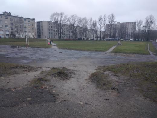 Фото и видео ниже сделаны на Востоке. Так выглядит участок дороги вдоль улицы Гродненской после зимы.