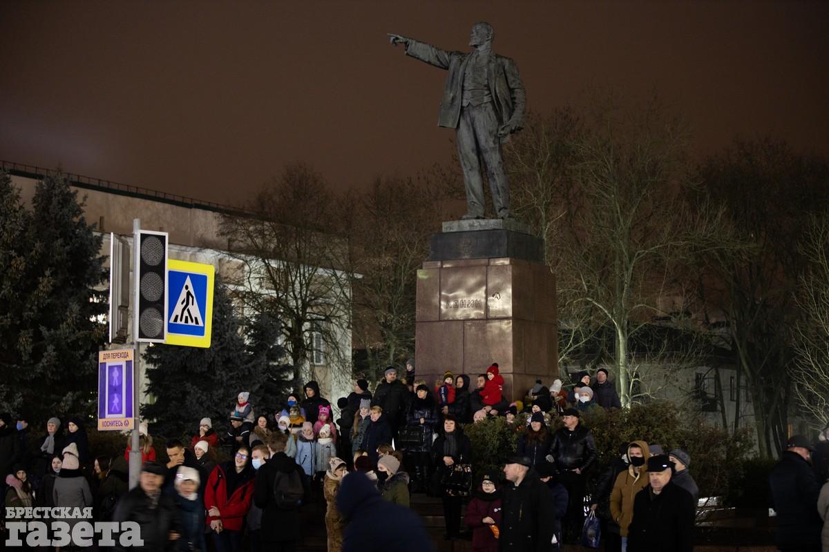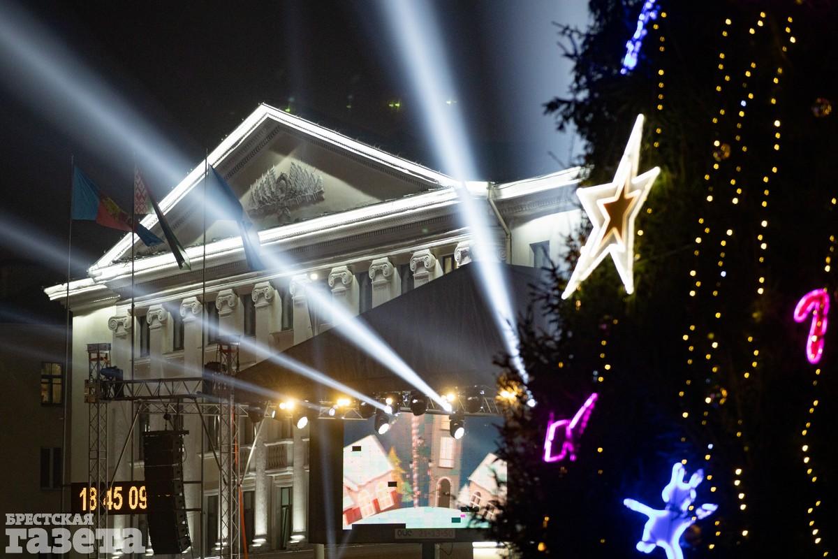 В Бресте вечером в пятницу торжественно зажгли главную елку города. Как и всегда, массовое мероприятие в честь этого события прошло на площади Ленина.