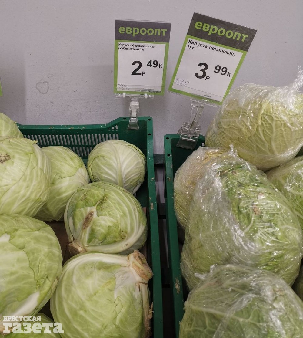 Цены на капусту и другие овощи на конец текущей недели на Брестском рынке (за 1 кг.):