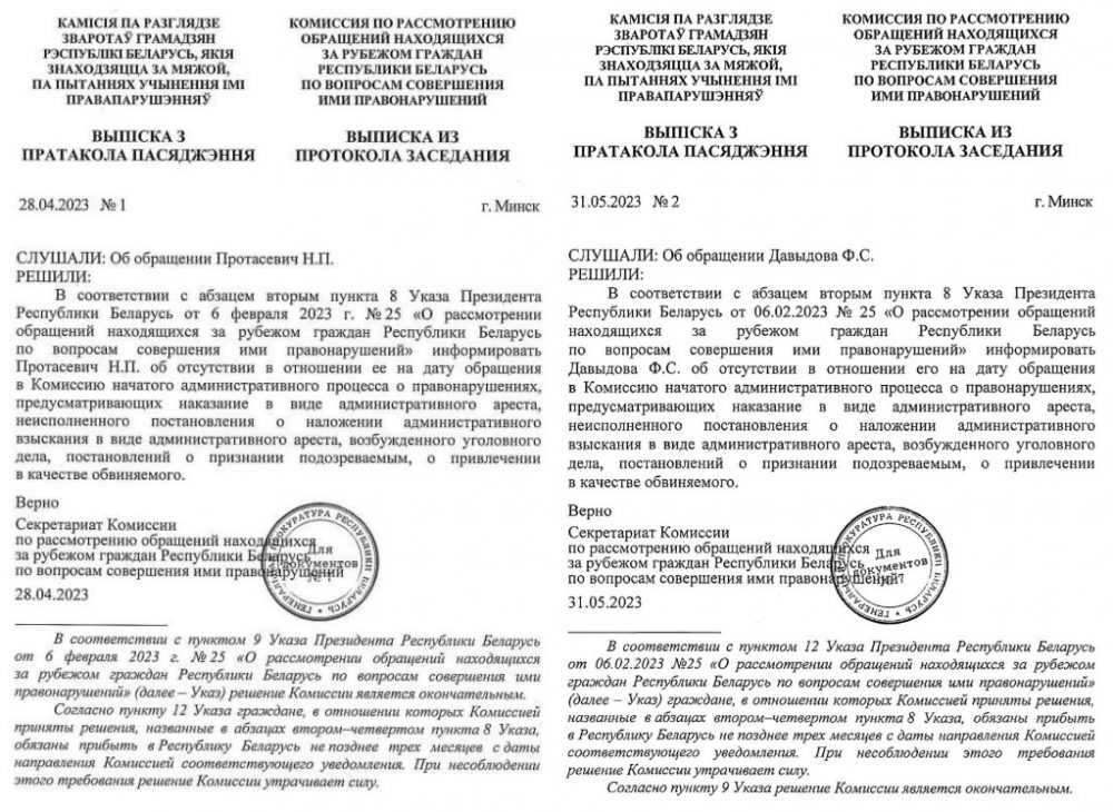 В организации подчеркнули, что «даже не пришлось взламывать базу комиссии, чтобы получить эти данные». В подтверждение своей информации «Киберпартизаны» опубликовали два протокола заседаний. 28 апреля комиссия рассматривала обращение матери Романа Протасевича, 31 мая — Филиппа Давыдова. Оба прошения были удовлетворены.