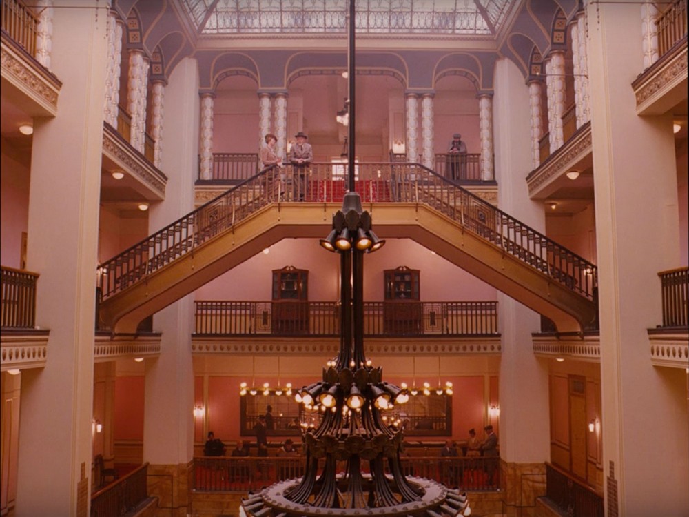 Хотя изображенный в фильме ярко-розовый фасад одноименного отеля — всего лишь муляж, впечатляющий интерьер здания был снят вживую. Роль гостиницы «сыграл» Görlitzer Warenhaus — универмаг города, построенный в стиле модерн.