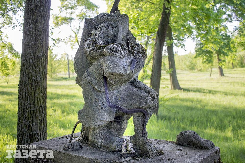 По воспоминаниям Ващуковны-Каменецкой, аллеи украшали скульптуры. Единственная бетонная скульптура, которую она не описала, сохранилась до наших дней. Мы видим несколько фигур, но верхние части туловищ у них отбиты, поэтому остается только гадать, что изображено. Предполагается, что это памятник польским харцерам — можно увидеть шесть ног в сандалиях, коротенькие штанишки, топорик и шахматную доску.