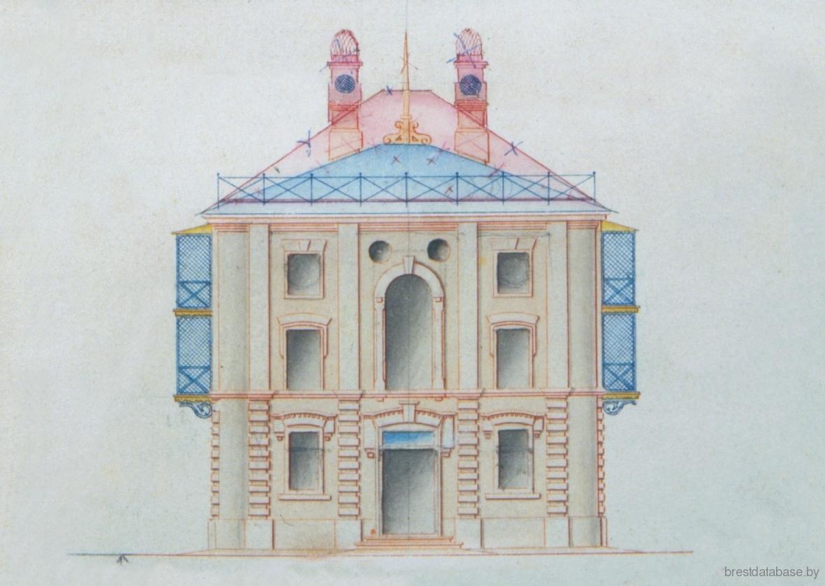 У памятника «Мужество» мы видим камень, на котором высечены римские цифры — MCMXXIV. Это дата начала реставрации коллегиума — 1924 год. Руководил реставрацией польский архитектор Юлиан Лисецкий, он же строил здания по улице Леваневского, стадион (сейчас — спорткомплекс «Брестский»). При поляках в здании иезуитского коллегиума находился штаб девятого Полесского округа.