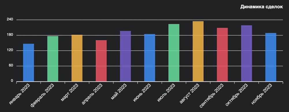 На начало декабря в базе за ноябрь фигурирует цифра в 189 сделок, и это минус 13% к результатам прошлого месяца, пишет wikidom. Тем не менее, есть все шансы, что с учетом добавления информации ноябрь возьмет планку в 200 сделок.
