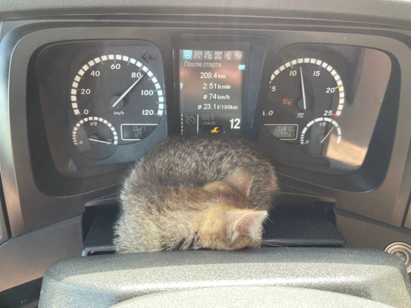 В рейсе с пушистым напарником мужчина провел 50 дней, откатав более 20 тысяч километров. На остановках Виталий выводил котенка на прогулки. Соня любила поиграть в траве и «поохотиться», но ни разу никуда не сбегала. Наоборот, пристально следила за каждым шагом своего хозяина.