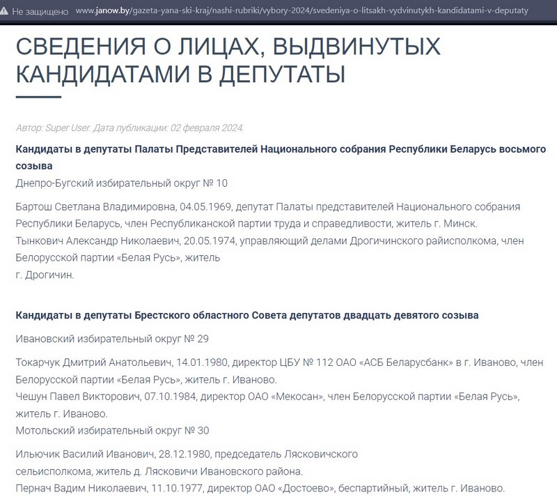 Логика во всем этом следующая. Избирательные комиссии в районах Брестской области сами решали, где кандидаты в депутаты опубликуют сведения о своих доходах за 2022 год. Если в районках, то они выделили в одном из печатных номеров несколько страниц под сведения о кандидатах в депутаты. Дальше они не были обязаны продублировать эту информацию на своих сайтах. Тиражи у районок небольшие, поэтому, если бы они опубликовали сведения о доходах на своих сайтах, то про них бы узнало большее количество людей.