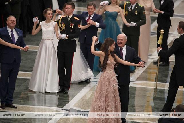 Президент Беларуси Александр Лукашенко сегодня на первом Республиканском новогоднем балу для молодежи во Дворце Независимости танцевал вальс с «Мисс Беларусь — 2018» Марией Василевич, передает БелТА.