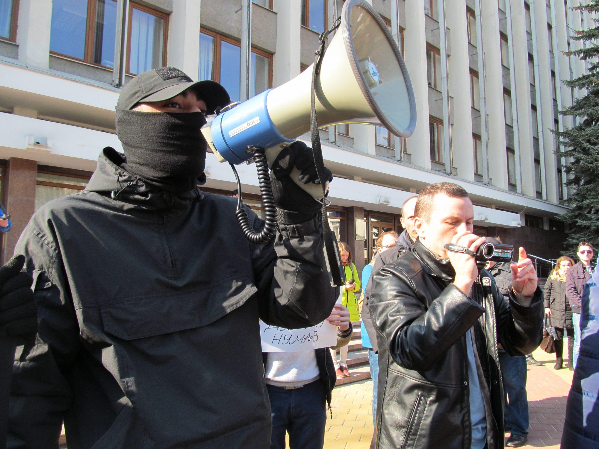 Митингующие подошли к горисполкому и ждут выхода местных властей. Владимир Вуек направился в здание.