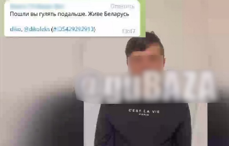 На камеру молодого человека заставили сознаться в том, что он «решил написать в чат-бот полка Кастуся Калиновского». Ресурс был фейковый, судя по тому, что через некоторое время на мобильник задержанного позвонили и предложили приехать в Витебск, так как там якобы «будет точка на отправку в полк Кастуся Калиновского».