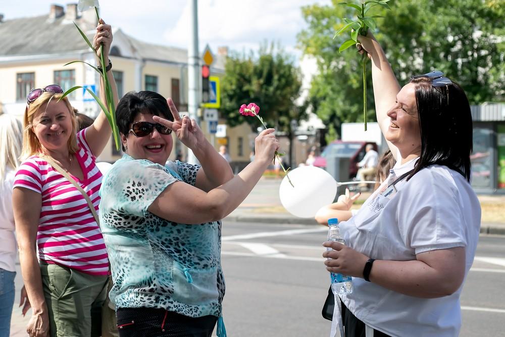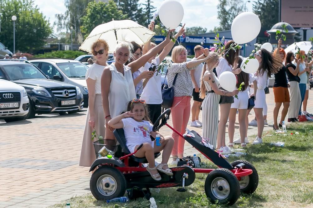 Как и ранее в руках у многих цветы, белые или красные воздушные шары, плакаты с мирными лозунгами: «Остановите насилие», «Мы не овцы», «На самом деле нас еще больше», «Очистили улицы — очистите совесть». Им сигналили проезжающие автомобили.