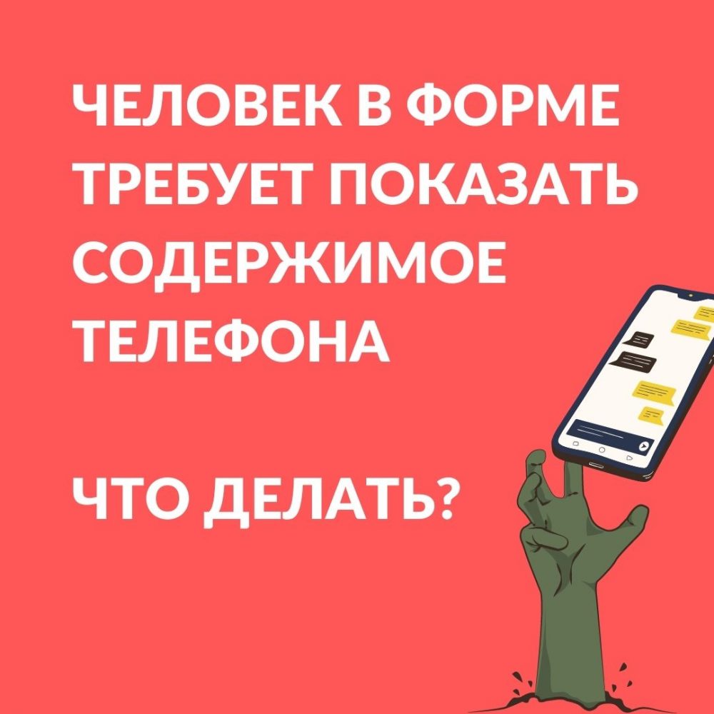 В ситуации, когда силовик требует не просто показать телефон, а разблокировать его, чтобы просмотреть содержимое, он должен сперва сообщить вам, что хочет там найти, а затем составить протокол осмотра. В этом протоколе должны быть зафиксированы все подробности: по каким причинам осуществляется проверка телефона, какие страницы в браузере милиционер просматривал, какие папки открывал. Один экземпляр этого протокола должен быть предоставлен вам. Придет время, и он вам пригодится, когда те, кто сегодня творит этот беспредел, будут стоять перед судом.