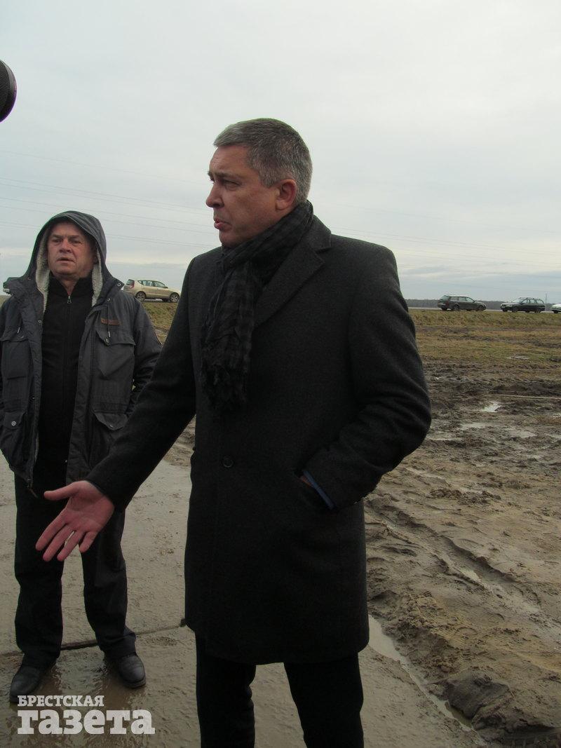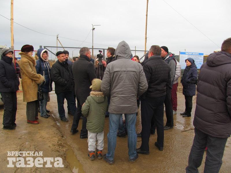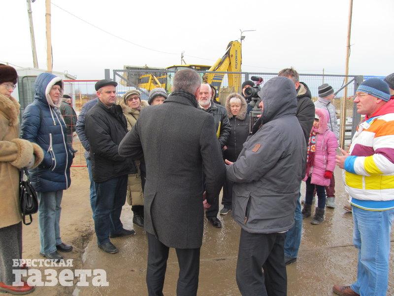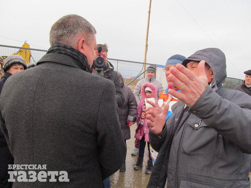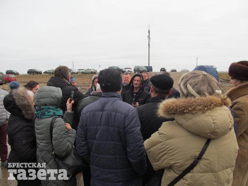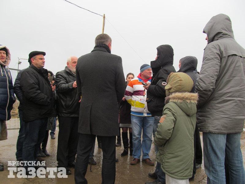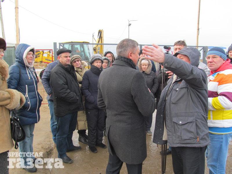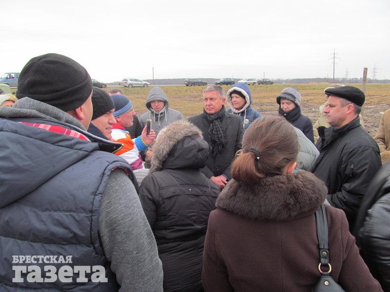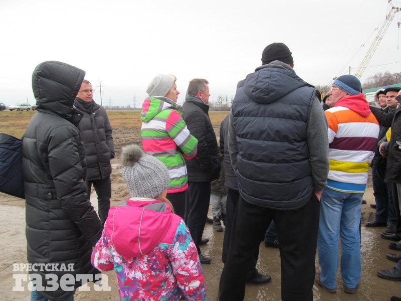 Тем временем к площадке приезжают директор аккумуляторного завода ООО «АйПауэр» Сергей Мельникович и заместитель главы администрации СЭЗ «Брест» Александр Шукайло. Директора завода обступают люди, засыпают вопросами и говорят, что будут добиваться остановки строительства предприятия.