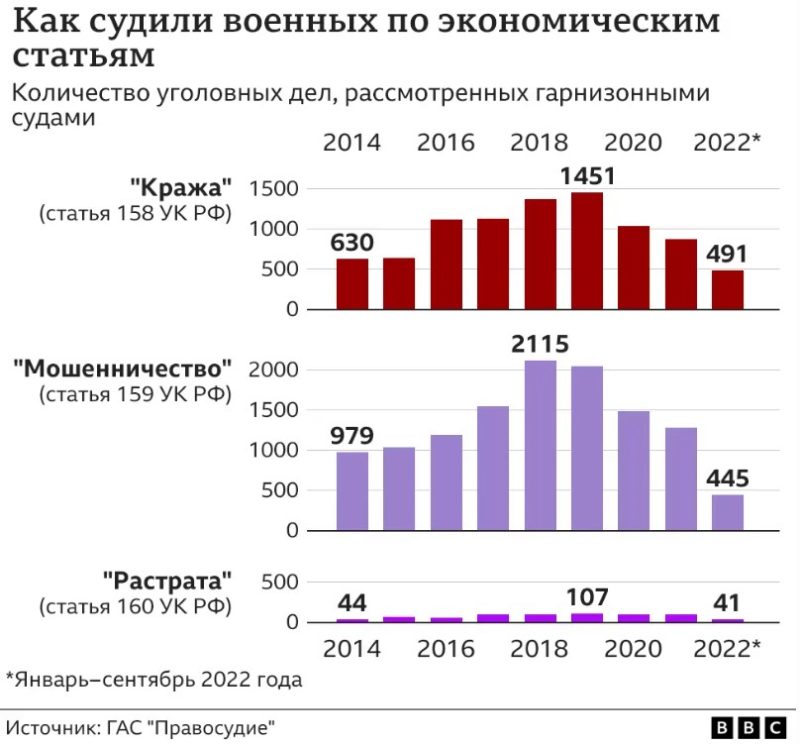 Экономические преступления — болезнь, которая сопровождала российскую армию все восемь лет с 2014 года.