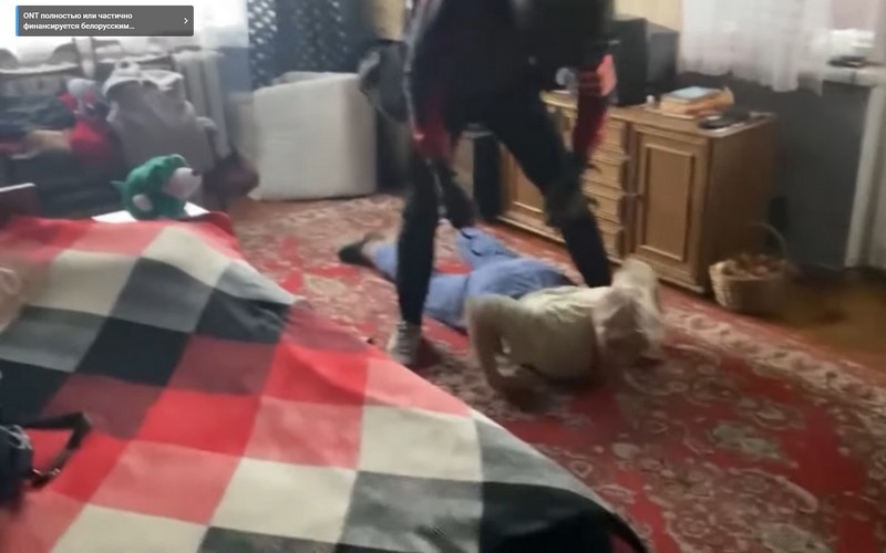 Сначала в сюжете показали задержание Александра Войтешика в Барановичах. Силовики вломились к нему в квартиру и приказали лечь на пол. После на видео, снятом силовиками, он был уже в наручниках.