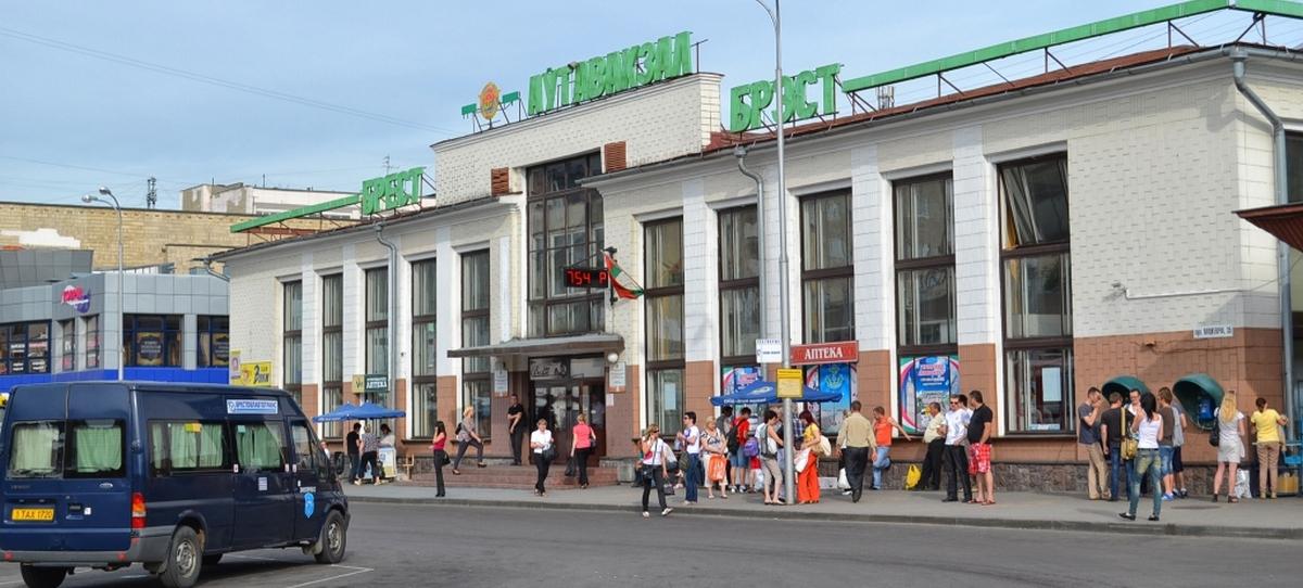 Здание брестского автовокзала было построено в 1963 году. Основным принципом его размещения на тот период являлась его близость к колхозному рынку. В год автовокзал обслуживает порядка 1,2 млн пассажиров. Ежедневно отсюда отправляются и прибывают около 500 автобусов и маршрутных такси.