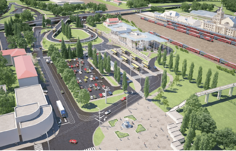 По проекту здесь появятся остановочные пункты, парковка для легковых автомобилей на 88 машино-мест, стоянка такси, велопарковка, тротуары и вело-пешеходные связи.