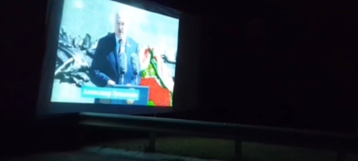 Начало «войны проекторами»? Украинцы установили на границе экран и показывают беларусам БЧБ-флаг и кадры из Бучи