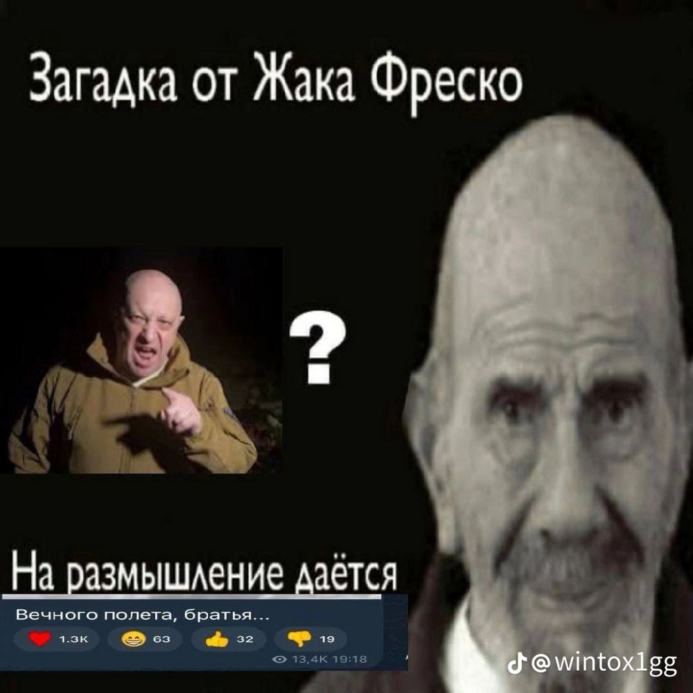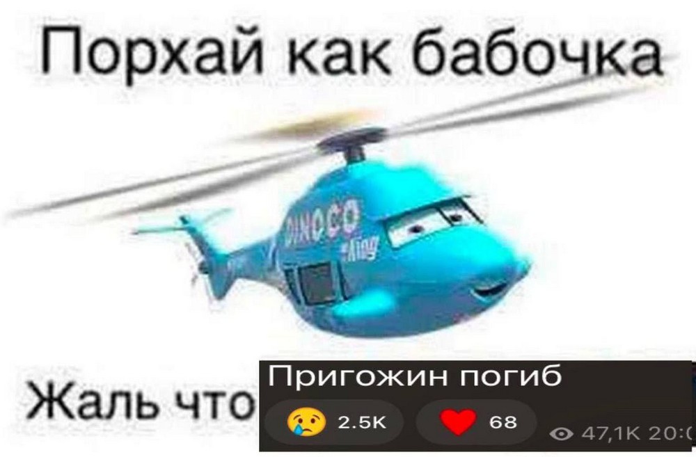 Пользователи соцсетей мгновенно отреагировали шутками и мемами на крушение самолета, принадлежавшего Пригожину. Собрали, на наш взгляд, лучшие реакции.