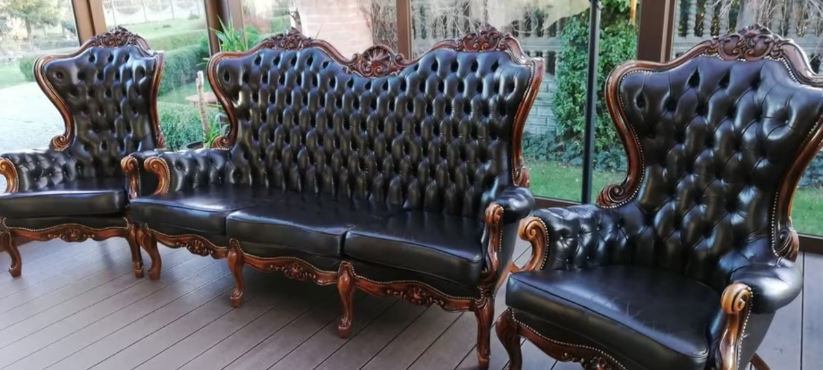 В последнее время в разделе мебель в Бресте стали часто встречаться со стилем барокко. Этот кожаный уголок из двух кресел и дивана – не исключение. Как пишет автор объявления, мебель из Франции.