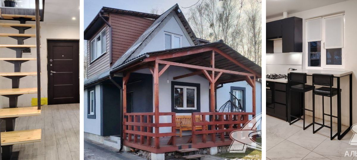 Мансардный дом дачного типа был построен в 2022 году. Оригинальный домик находится на территории Мухавецкого сельсовета. До Бреста рукой подать. Здание привлекает внимание своей компактностью и оригинальным внешним видом. Черно-голубые стены выполнены из газосиликатных блоков, на кровле — шифер. Вход в дом предваряет открытая терраса.