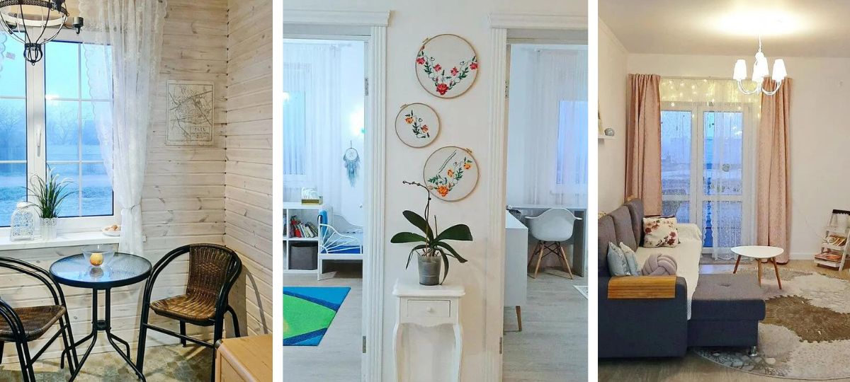 Интерьер во всех комнатах выполнен с элементами рустикального стиля.