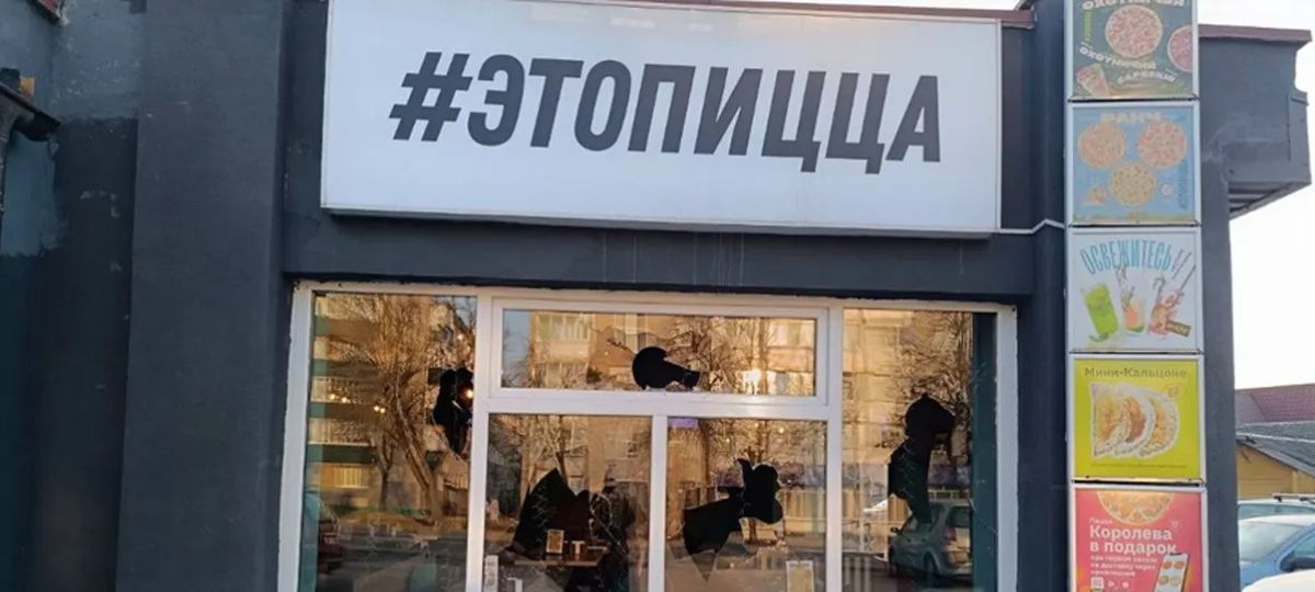 13.03.2026 13:23 пиццерия «Этопицца» в Барановичах после инцидента. Источник фото