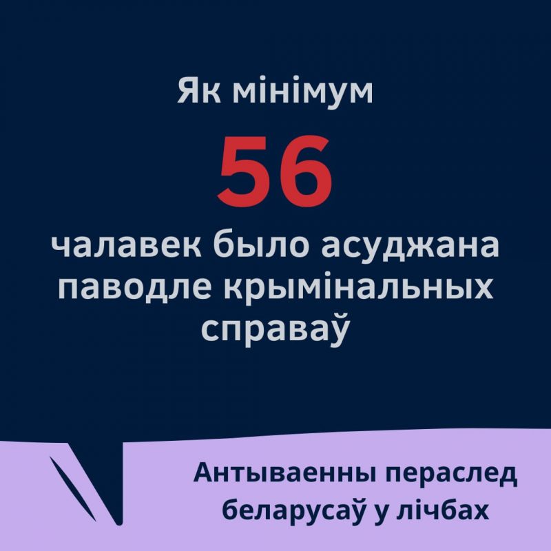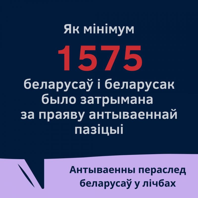 Всего за проявление антивоенной позиции задержано не менее 1 575 беларусов и беларусок. Из них 56 человек осуждены по уголовным делам на срок от 1 до 23 лет.