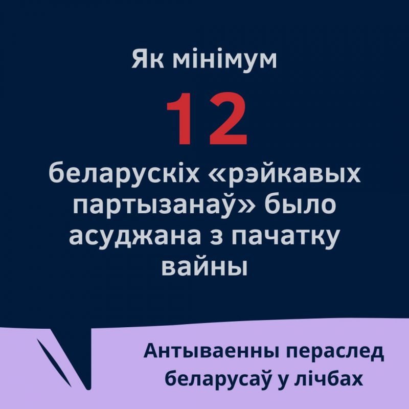 В Беларуси 12 человек за диверсии на железной дороге приговорены в общей сложности к 191,5 года неволи. За передачу фото российской военной техники в СМИ осуждено не менее 31 человека, за желание воевать на стороне Украины в неволе находятся по меньшей мере 11 человек, восемь из которых осуждены.