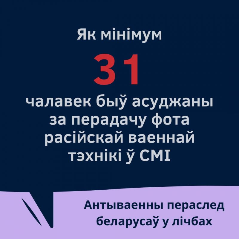 Военную активность на территории Беларуси ежедневно отслеживает проект «Беларускі Гаюн». По подсчетам правозащитников, за передачу данных о военной технике «Беларускаму Гаюну» и негосударственным СМИ осуждены не менее 30 человек. Как правило, им вменяют содействие экстремистской деятельности.