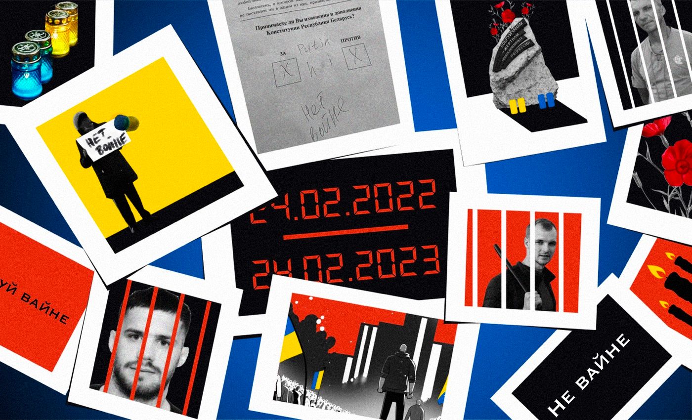 «Медиазона» собрала примеры того, как беларусы весь год выступали против войны. Мы перепечатываем этот текст. Также рекомендуем вам прочитать более подробный текст «Весны» о том, как власти уже год преследуют беларусов за антивоенную позицию.