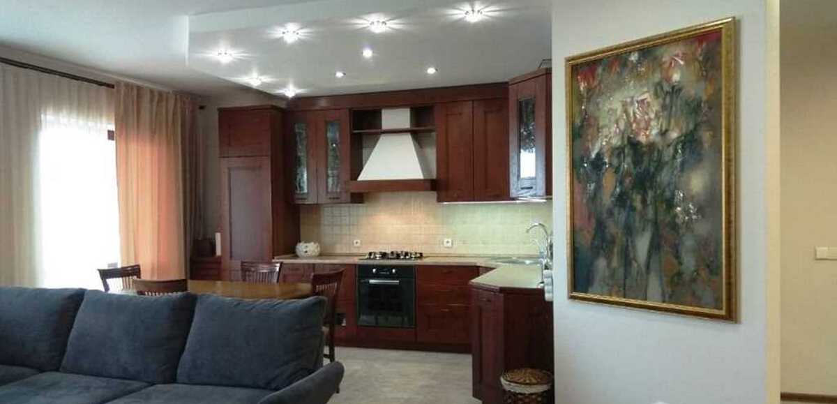 Шестикомнатную квартиру общей площадью почти 300 “квадратов” продают на Киевке. Находится она на первом этаже дома 2004 года постройки. Кроме жилых комнат, гостиной, кухни и ванной здесь есть подсобное помещение с гаражом на два автомобиля.