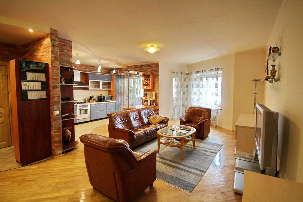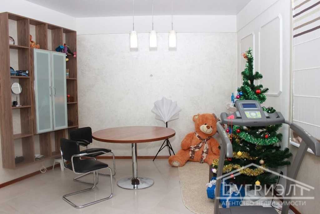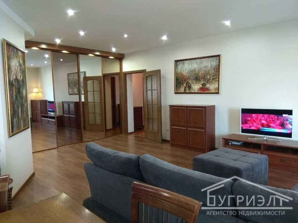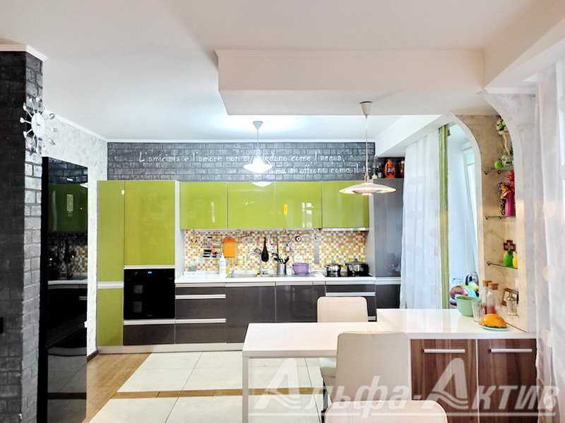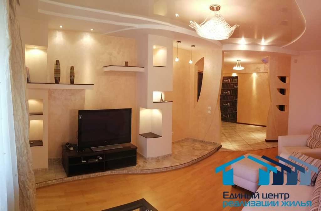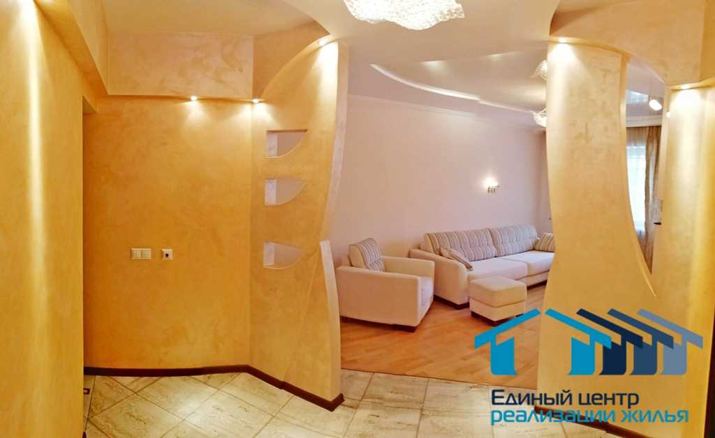Квартиру – в кирпичной пятиэтажке 2009 года постройки. Находится на четвертом этаже. Из эркерных окон открывается панорамный обзор на центр Бреста. Продавец заявляет, что комнаты оформлен в стиле современной классики. Три спальни изолированы, а гостиная объединена с пространством кухни.