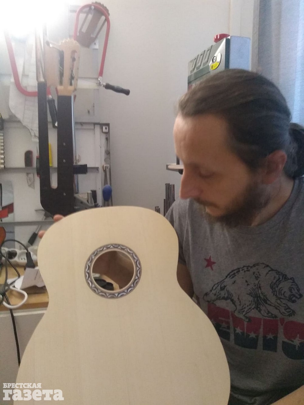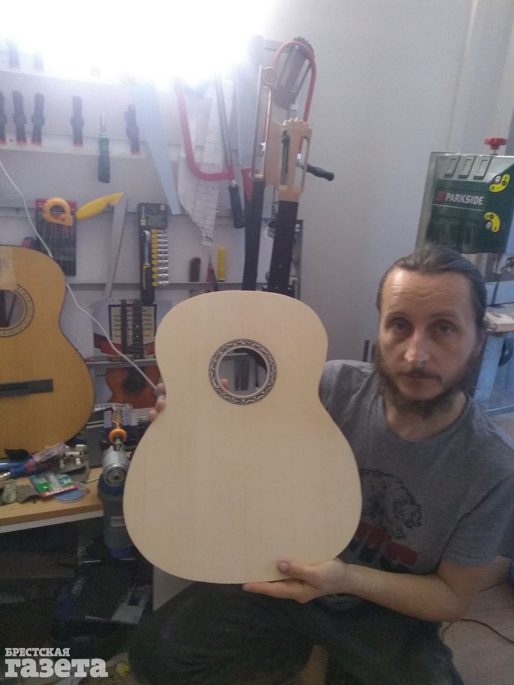 – Мне 42 гады, я нарадзіўся ў Пінску і з падлеткавага ўзросту займаўся музычнымі інструментамі. Ніякая іншая праца мяне не цікавіла. Рамантаваў іх, наладжваў з 14 гадоў. Зрабіў спачатку балалайку, потым гітару. Трошку яна грала, першы блін комам, як кажуць. А потым стала лепш атрымлівацца. Збольшага вучыўся гэтаму сам. У асноўным займаўся скрыпкамі, гітарамі. Гітары рабіў класічныя, эстрадныя, электра.