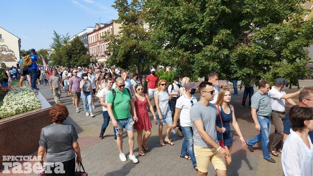 В это воскресенье, 30 августа, брестчане пошли по новому маршруту. На этот раз бело-красно-белая колонна на перекрестке улицы Московской возле «Беларусбанка» повернула налево — на Пионерскую. Дойдя до перекрестка с Пушкинской, они свернули на эту улицу и вернулись в центр города к ЦУМу.