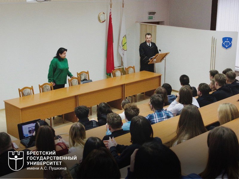Один из студентов рассказал изданию, что за процессом наблюдали десятки студентов, которых разделили на две аудитории: одна из них оборудована под зал судебных заседаний, другая — поточная. В первой студенты из разных факультетов наблюдали за процессом лично, во второй — смотрели онлайн-трансляцию. Вел процесс судья суда Ленинского района Бреста Александр Семенчук.