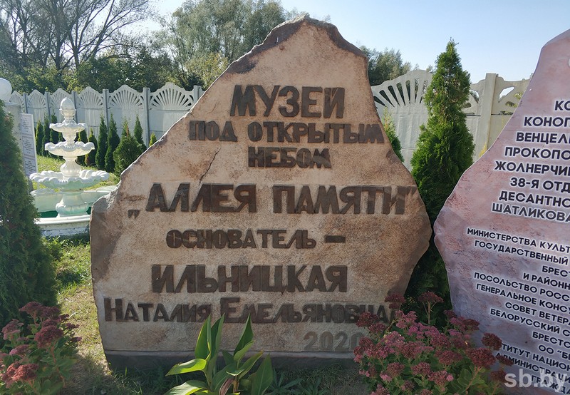 В поселке Мухавец под Брестом возле гостиничного комплекса «Лагуна Янтарная» она создала Аллею памяти — музей под открытым небом.