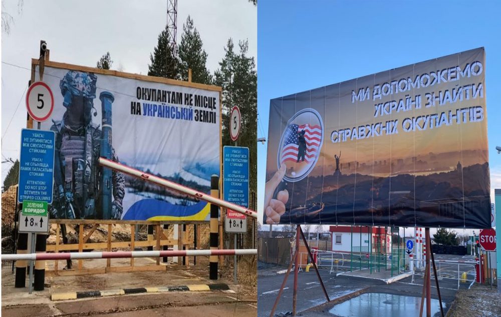 В начале марта украинские пограничники разместили на своей территории шесть билбордов с надписью «Окупантам не мiсце на українськiй землi» [Перевод: «Оккупантам не место на украинской земле»].