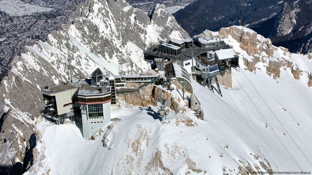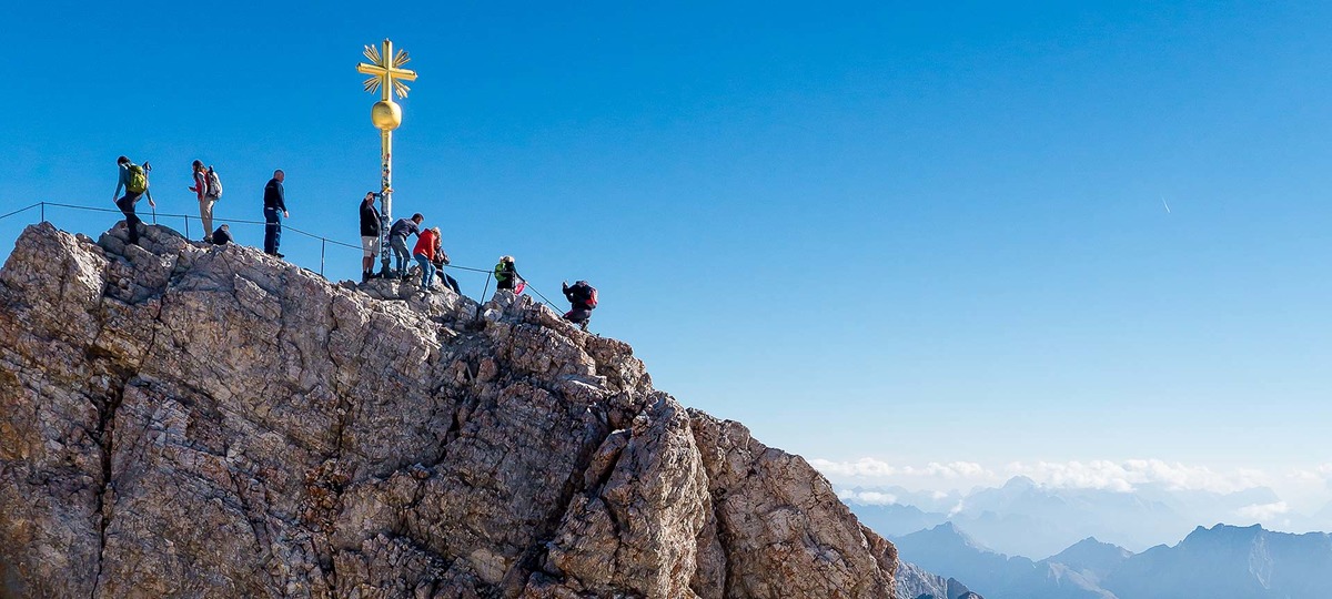Между восточной и западной вершинами Цугшпитце пролегает и граница между этими странами. А в солнечную и ясную погоду с вершины открывается вид на сразу четыре страны: Германию, Австрию, Италию и Швейцарию. Это одна из причин, почему на вершине этой горы в Баварских Альпах ежегодно бывает около 600 тысяч человек.