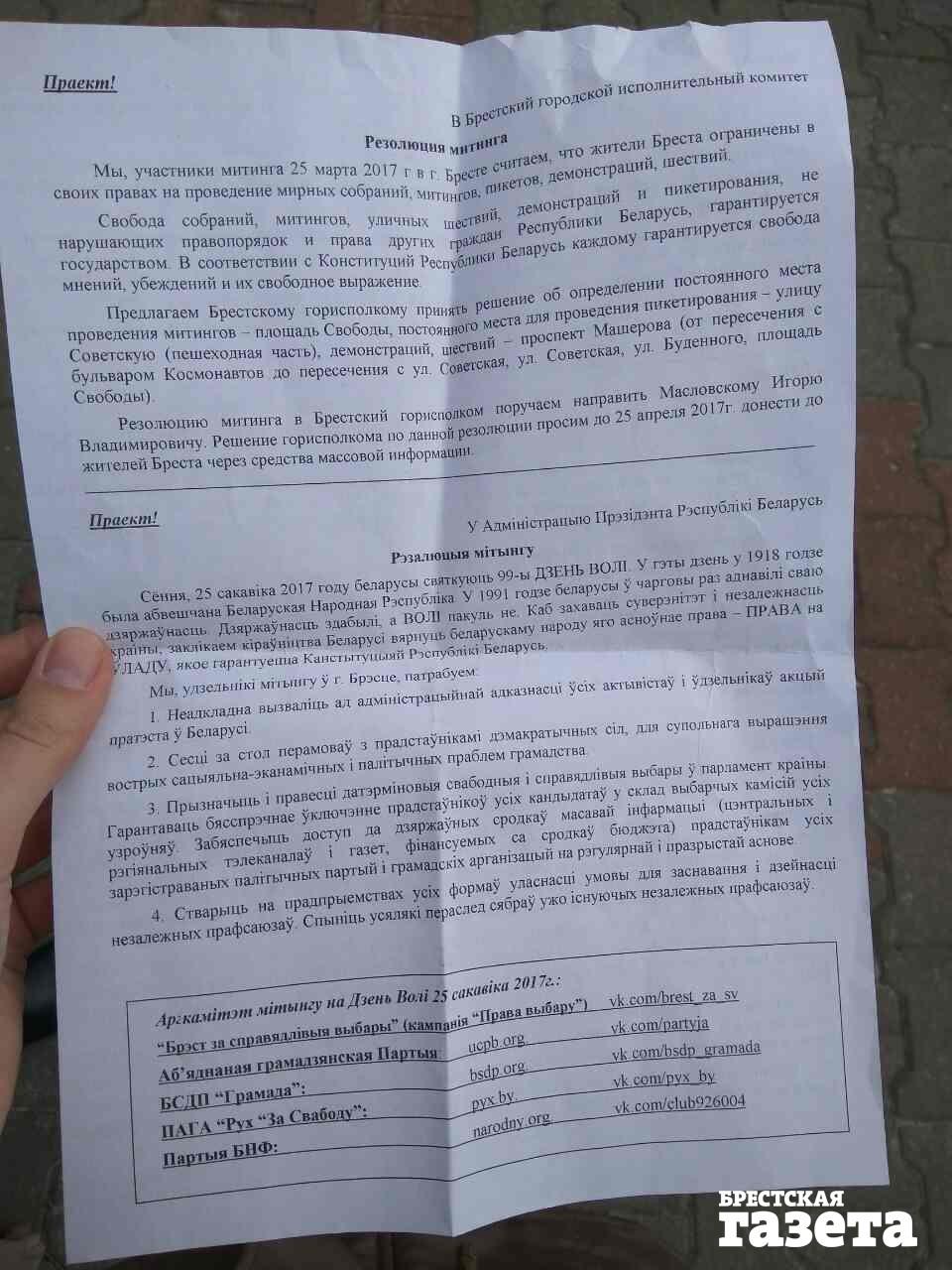 Был создан организационный комитет по празднованию Дня Воли в Бресте. В его состав вошли областные структуры партий БНФ, БСДП, ОГП, Движения «За Свободу», независимых профсоюзов, ряда общественных организаций и учреждений.