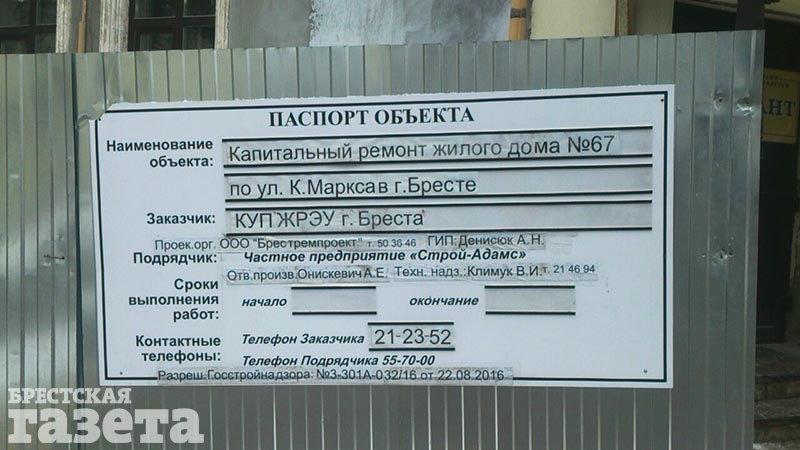 Корреспондент «БГ» связалась с подрядчиком ЧП «Строй-Адамс» и получила пояснение, что работы на объекте приостановлены заказчиком — КУП «ЖРЭУ г. Бреста». К нему-де и все вопросы. А на претензии жильцов дома по поводу использования строителями электричества в квартирах и отказа в справке для перерасчета за отопление руководитель фирмы «Строй-Адамс» Адам Слуковский ответил: «Чтобы взять 600 киловатт, это надо, чтоб весь город работал. Это все ваши выдумки! В первой квартире брали электроэнергию только тогда, когда там что-то делали. Выдумываете, а потом начинаете это выдавать за чистую монету. Не выдумывайте ничего, ничего мы не отключали и ничего не брали у жильцов. У нас есть электростанции, счетчик, по которому мы, если берем, то за него и платим».