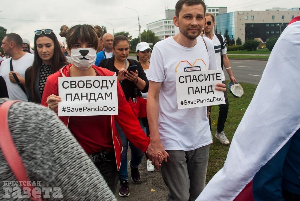 Были плакаты в поддержку IT-компании PandaDoc, в минском офисе которой 2 сентября прошли обыски, ее сотрудников допрашивали, возбудили уголовное дело по части 4 статьи 210 УК Республики Беларусь и задержали четырех человек.