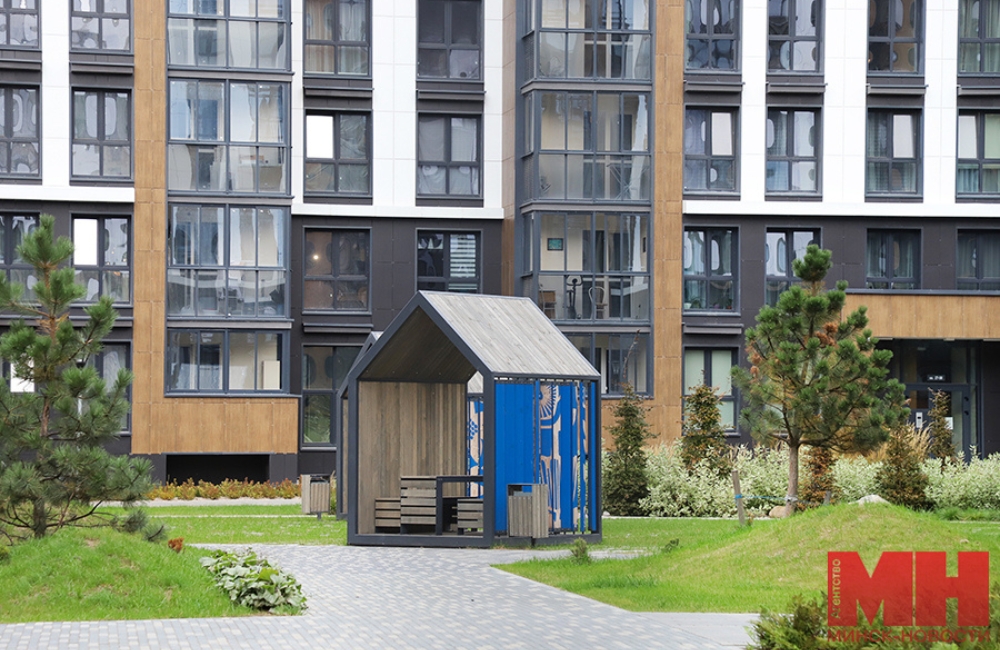 В ЖК пространство не только эстетичное, но и функциональное, обжитости комплексу добавляет газон, высаженные травы, кустарники и деревья, пишут авторы. На территории есть детская площадка «с современным прорезиненным покрытием», песочница, игровой комплекс, «и даже батут». Для людей всех возрастов — скамейки, беседки и комплекты уличной мебели.