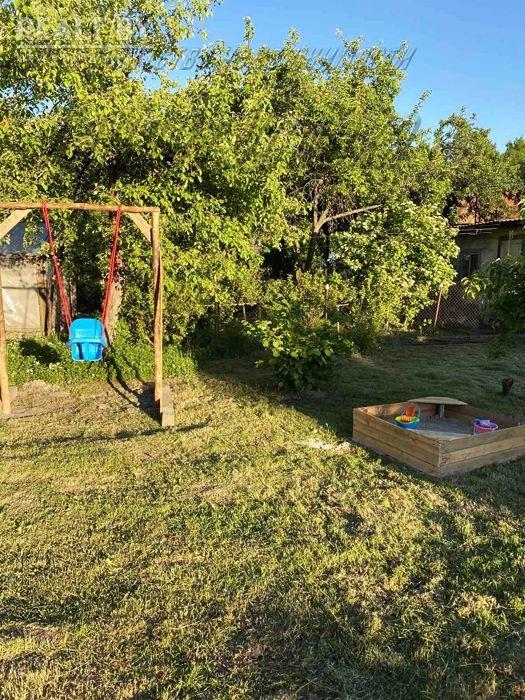 На участке в 5 соток растут плодовые деревья, есть детская качель, оборудованная песочница, небольшая теплица, добротная хозпостройка для инвентаря общей площадью 10 кв. м и уборная.