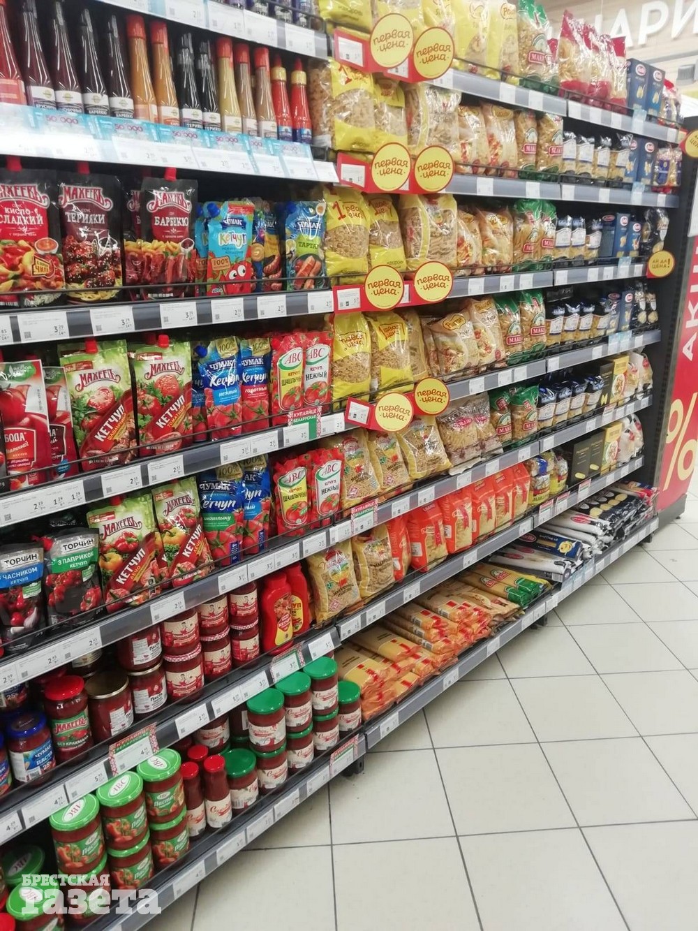 И действительно. На полках в брестских магазинах дефицита товаров нет: крупы, хлеб, макаронные изделия, и, простите, туалетная бумага в изобилии. Со слов брестчан, единственное, что постепенно начало пропадать – соль украинского производства. Та, самая, с голубым васильком на упаковке.