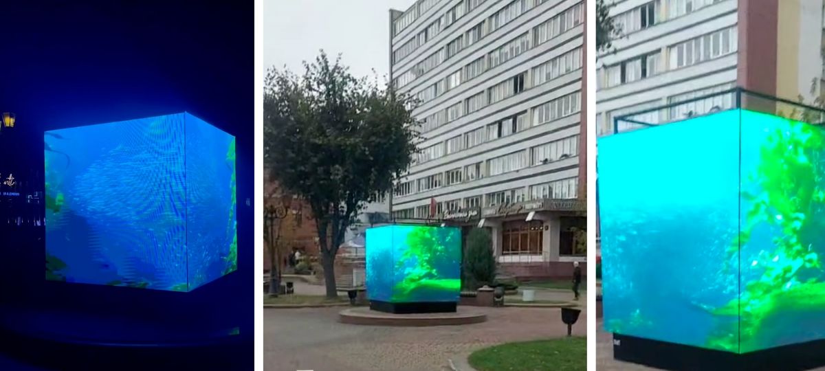 Видео с новой инсталляцией на Советской в Бресте появилось вчера вечером в телеграм-канале горисполкомовской газеты «Брестский вестник». Арт-объект представляет собой куб со светящимися экранами, который имитирует аквариум с рыбками. На ролике экспозиция выглядит эффектно и завораживающе. Но вместе с тем, как написали пользователи, «слепит в глаза».