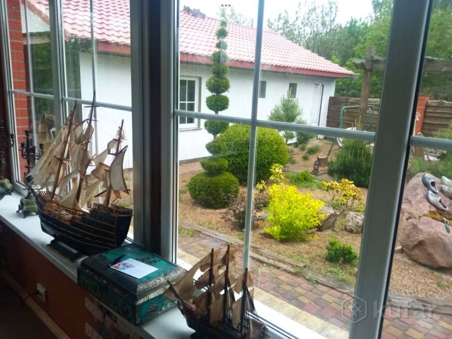 В объявлении указано, что в одноэтажном доме с высокими потолками (2,7 м) 5 комнат. Есть полностью оборудованная кухня площадью 23,5 м², обустроенные ванна и санузел.
