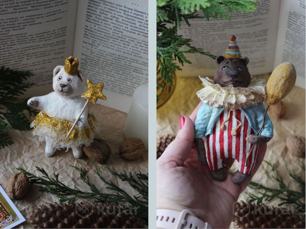 Значительно дешевле – игрушки-дети из ваты. Мальчик с санками или на коньках, девочка с шоколадкой «Аленка» или баранками — видно, что каждой детали уделено внимание. «Оригинальное украшение для Вашей елочки или трогательный новогодний подарок для ваших близких», – так описывает автор свои работы. Цена вопроса — 70 BYN. Недешево, конечно. Но коллекционеров явно порадует.
