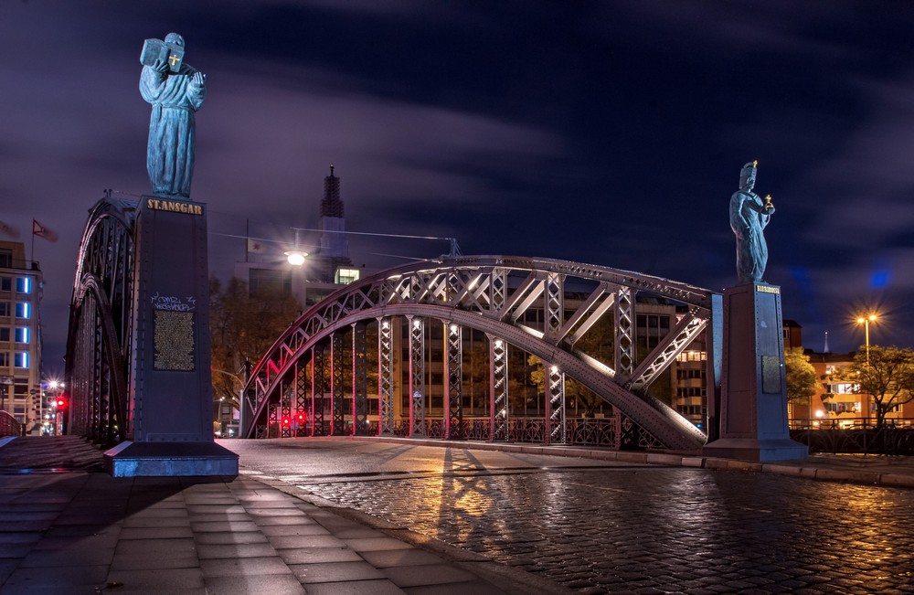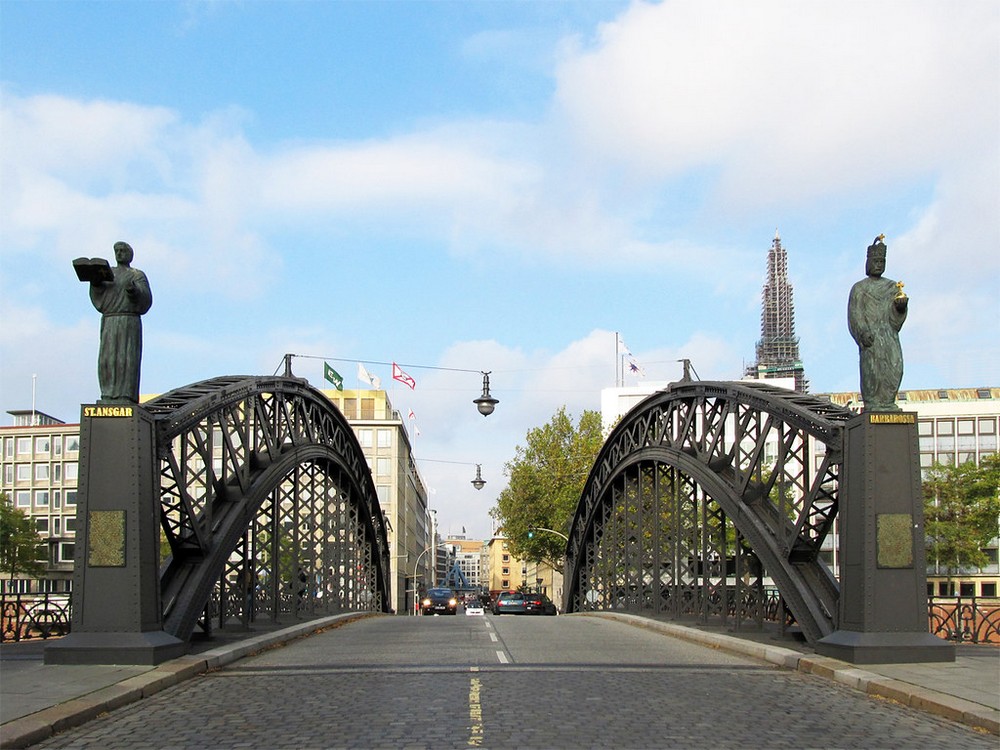 Раньше мост был украшен каменным распятием, но затем оно бесследно исчезло. Сейчас в середине моста установлены скульптуры епископа и графа. Отсюда открывается замечательный вид на старый Гамбург.