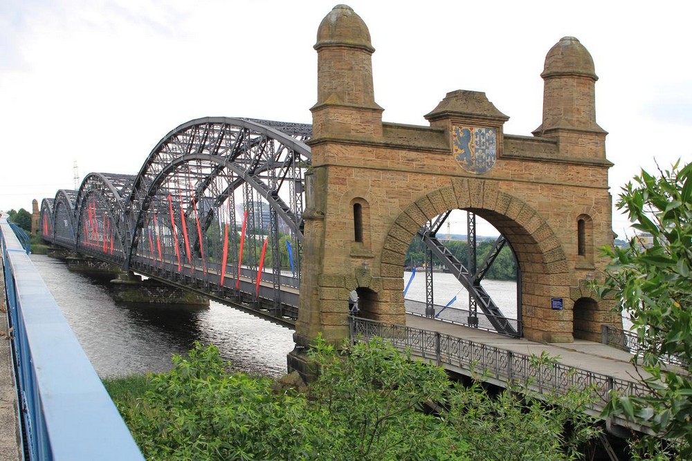 Это самый старый мост в городе, построен примерно в 1663 году, хотя впервые упоминается в 1353 году. Мост длиной 25 метров с тремя арками разного размера построен из блоков песчаника. Рельсы и фонари здесь сохранились еще с XIX века.