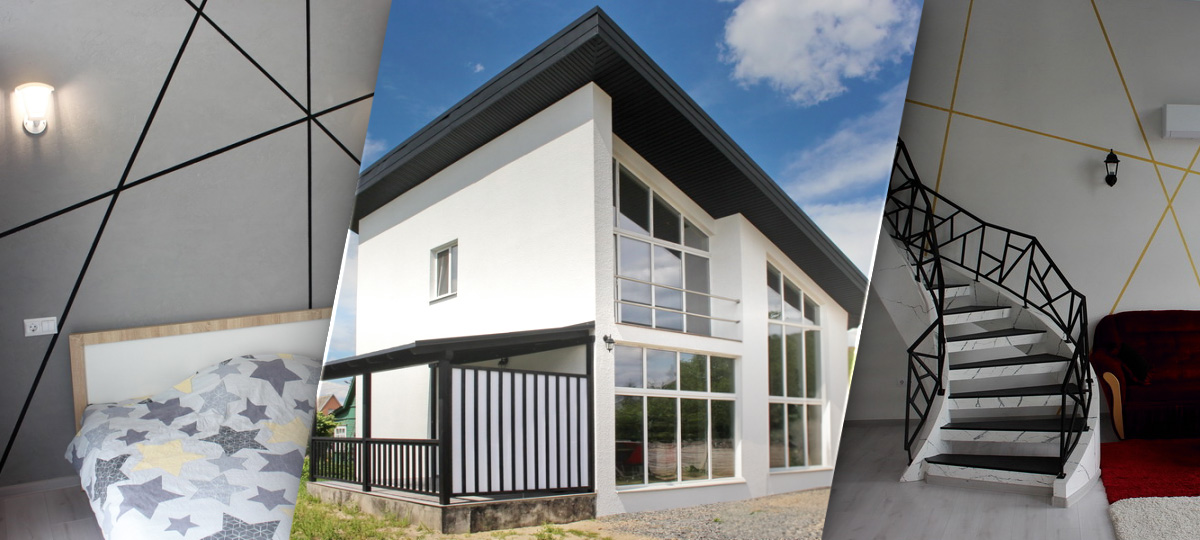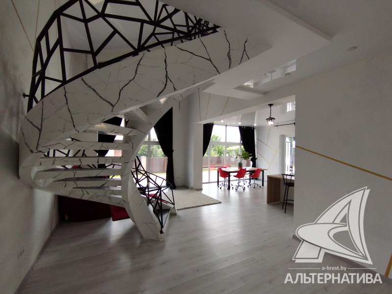 Дачный дом жилого типа 2022 года постройки находится в ближайшем пригороде Бреста. Экстерьер здания бросает вызов традиционным представлениям о загородном жилье, воплощая идеи футуристической архитектуры. Настоящий дом из будущего. Сразу обращают на себя внимание четкие прямые линии и большие окна, замещающие часть стены. Этот двухэтажный дом в стиле хай-тек заметно выделяется на фоне своих однотипных соседей.